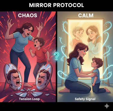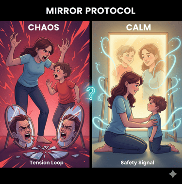 The Shift: This utilizes Mirror Neurons. Your child's brain is biologically wired to sync with yours. By consciously choosing a calm, grounded posture, you are literally broadcasting a "Safety Signal" to their nervous system. You are leading by being, not just by doing.