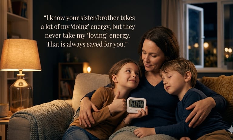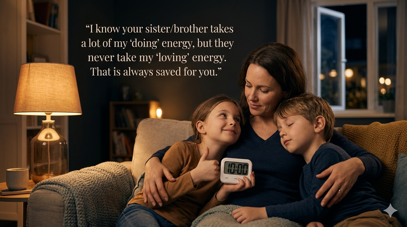 Stop trying to find an hour; find 10 minutes. Set a physical timer and tell the sibling, "You are the boss of this window." * The Rule: No phones, no "parenting," and—crucially—no talking about their siblings’ needs.